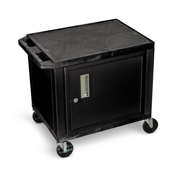 AV Cart - 26"H - Two Shelves with Cabinet - Black