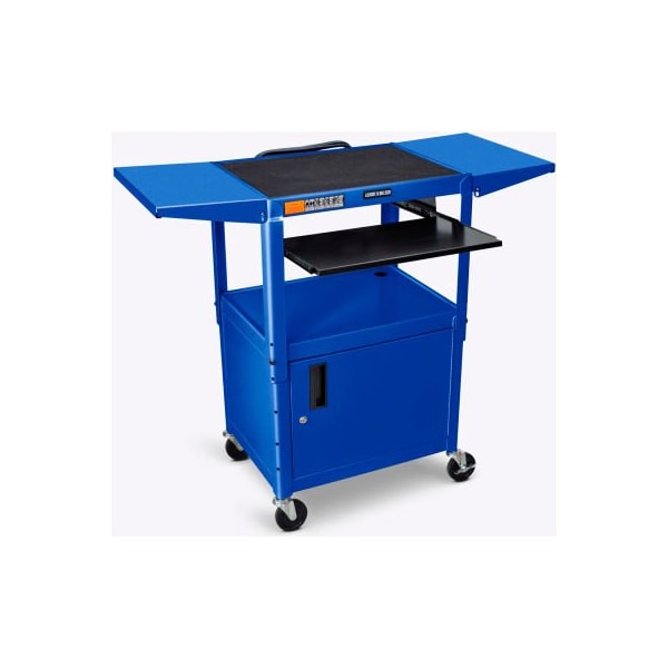 Luxor Adjustable-Height Steel AV Cart with Pullout Keyboard Tray, Cabinet, and Drop Leaf, Blue