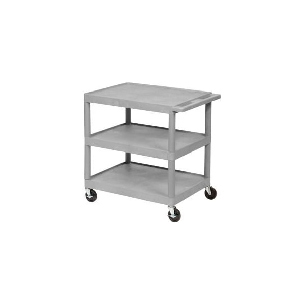 Luxor Plastic Utility Cart, 3 Shelf, 24Lx18Wx34H, Gray