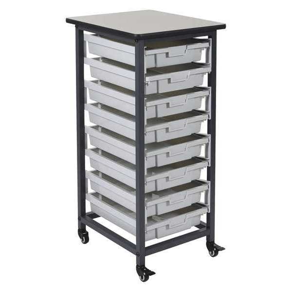 - • Organize and stack supplies in eight 3"-deep tubs