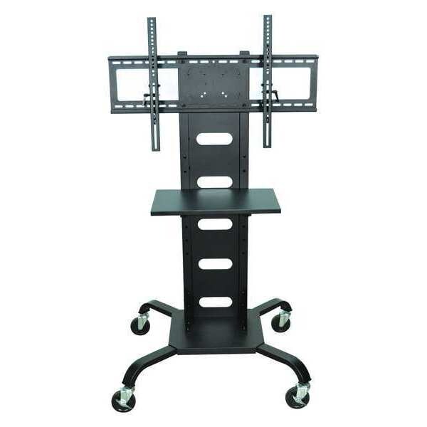 Stands strong. Moves easily. Built with an all-steel frame, black powder coat finish, sturdy curved legs, and lockable rolling casters, the Luxor Flat Panel TV Stand and Mount is a strong monitor stand with a simple style that’s just right for classrooms, boardrooms, trade shows, and libraries. It can hold a monitor ranging from 37†to 60†in size and offers a continuous touch tilt of 15 degrees up or down. It also features an integrated cable management system and an adjustable equipment shelf that can be positioned from 25" to 40" high.