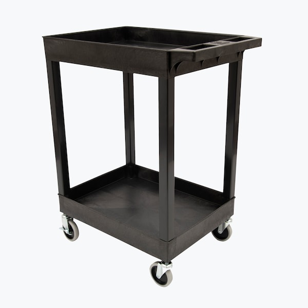 Plastic Utility Tub Cart - 24" x 18" -Two Shelves, Heavy Duty Casters - Black