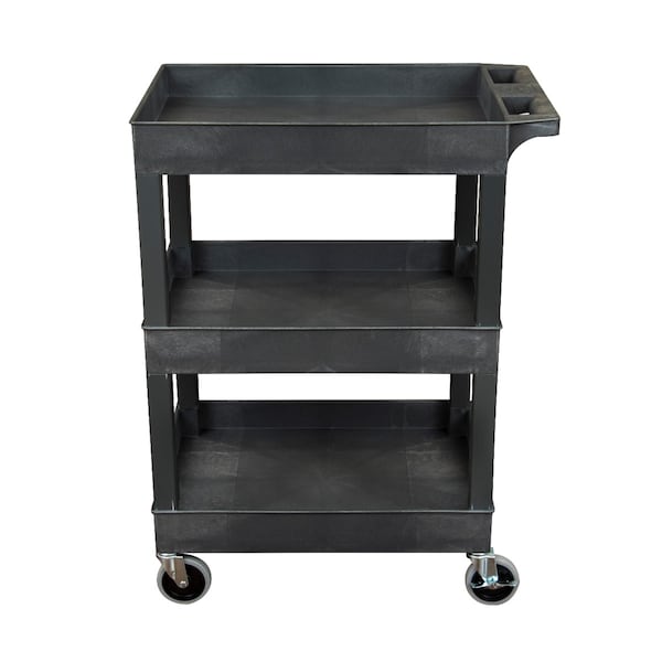 Plastic Utility Tub Cart - Three Shelf-Black - 24" x 18"