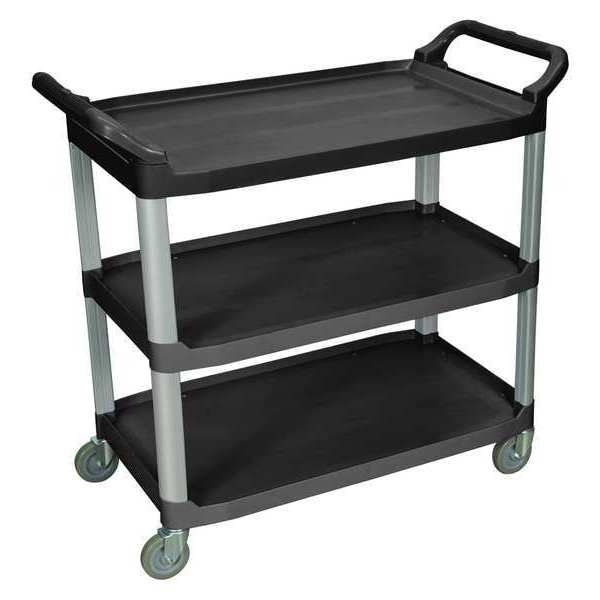 The Luxor Three-Shelf Large Serving Cart is made to move up to 300 lbs. of items with ease. The shelves are made from a durable polypropylene that's resistant to scrapes or dents and easy to clean. A 1" lip on the sides and back keep contents onboard while still allowing items to slide on or off from the front. Aluminum uprights provide strong, lightweight support and the swiveling casters, coupled with the dual handles, make it easy to roll from place to place. It's an ideal utility cart for restaurants, food service, healthcare or any light-duty applications.