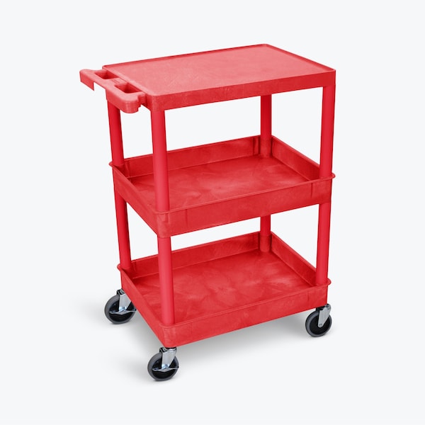 Tub Cart - Three Shelves - Top, Tub Middle/Bottom Shelf Cart - All Red