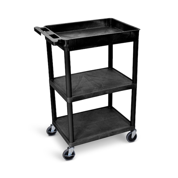 Tub Top and Flat Middle/Bottom Shelf Cart - Black