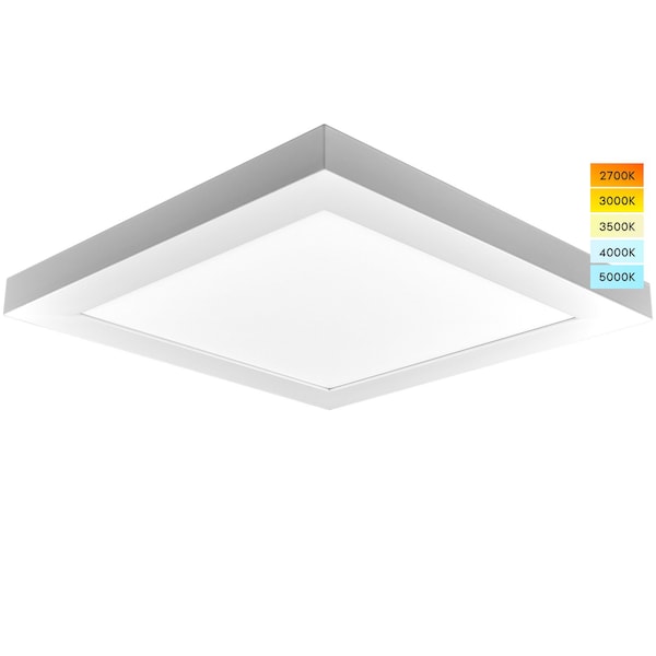 Luxrite CCT Color Selectable LED Panel Lights Enjoy the best of an adjustable surface mounted light fixture with these 12 Inch LED light panels which allow you to switch between 5 different colors when picking a light that is most suitable for your space Choose from 2700K warm white, 3000K soft white, 3500K natural white, 4000K cool white, or 5000K bright white with just a simple adjustment Built with LED integrated lights into a ultra thin square fixture which is simple to install in any space and is especially suitable for low ceilings since each fixture is only 11 inch thick With its damp location rating, you can use these in indoor our outdoor settings without issues When used with a dimmer, you'll be able to adjust the light output of these ceiling lights from 100 down to 10 in order to give your space just the right amount of light you prefer The modern design of these flush mount light fixtures provide the added benefit of uniform light distribution for an even amount of light being sent into your space and a sturdy construction which make these panels harder to bend Enjoy reliable lighting that also come with an Energy Star rating, IC rated for insulation contact and UL listed for your safety