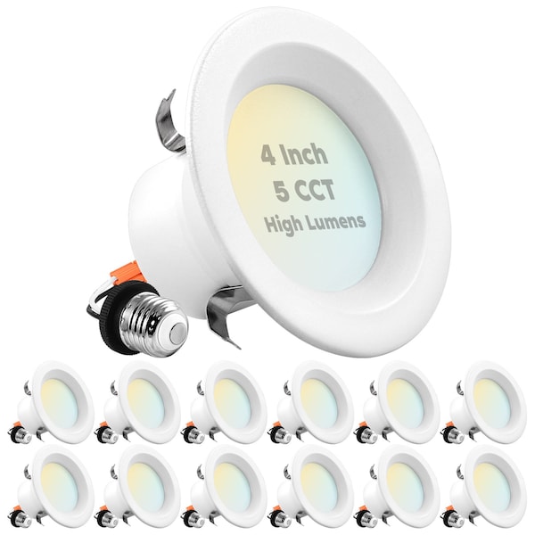 4" LED Recessed Can Lights 5 CCT Selectable 2700K-5000K 14W (75W Equivalent) 950LM Dimmable 12-Pack