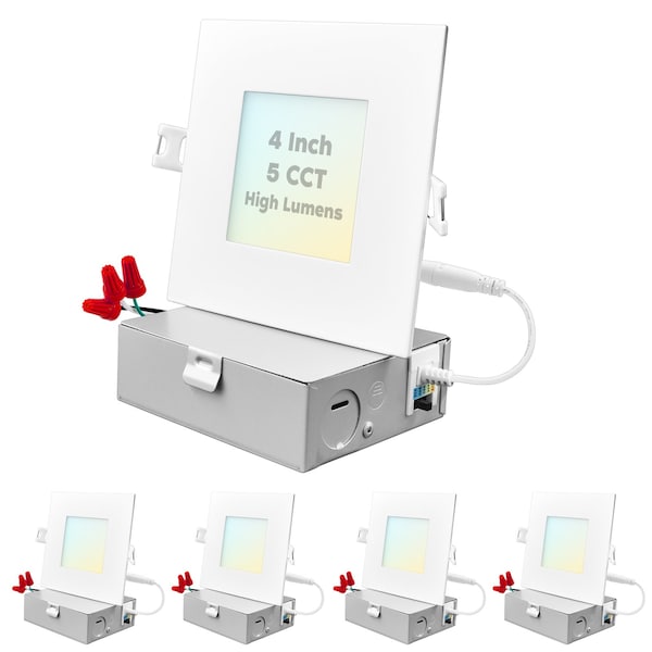 4" Square Ultra Thin LED Recessed Downlights 5 CCT Selectable 2700K-5000K 12W 950LM Dimmable 4-Pack