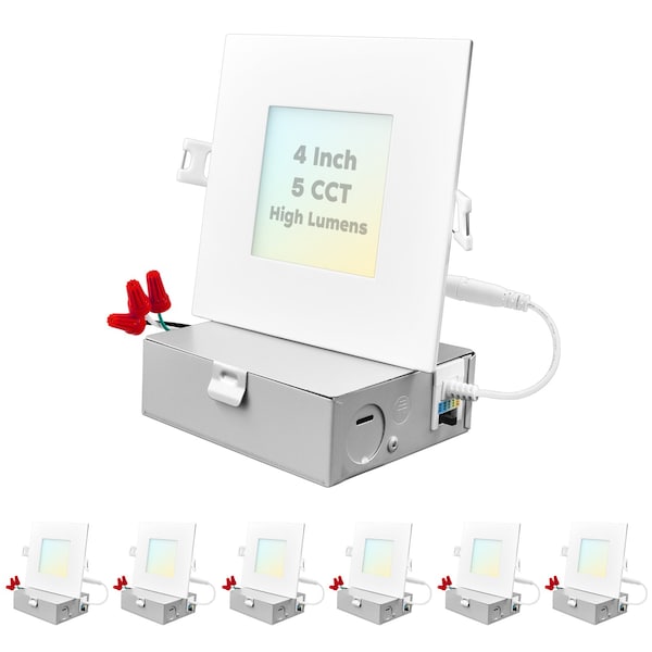 4" Square Ultra Thin LED Recessed Downlights 5 CCT Selectable 2700K-5000K 12W 950LM Dimmable 6-Pack