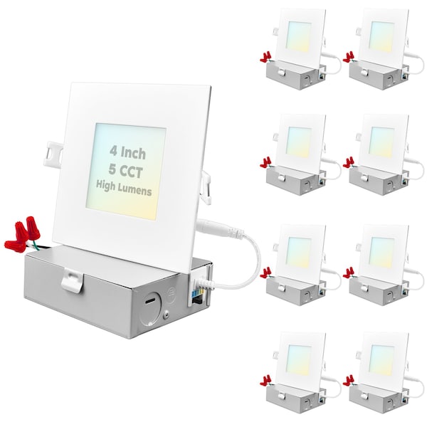 4" Square Ultra Thin LED Recessed Downlights 5 CCT Selectable 2700K-5000K 12W 950LM Dimmable 8-Pack