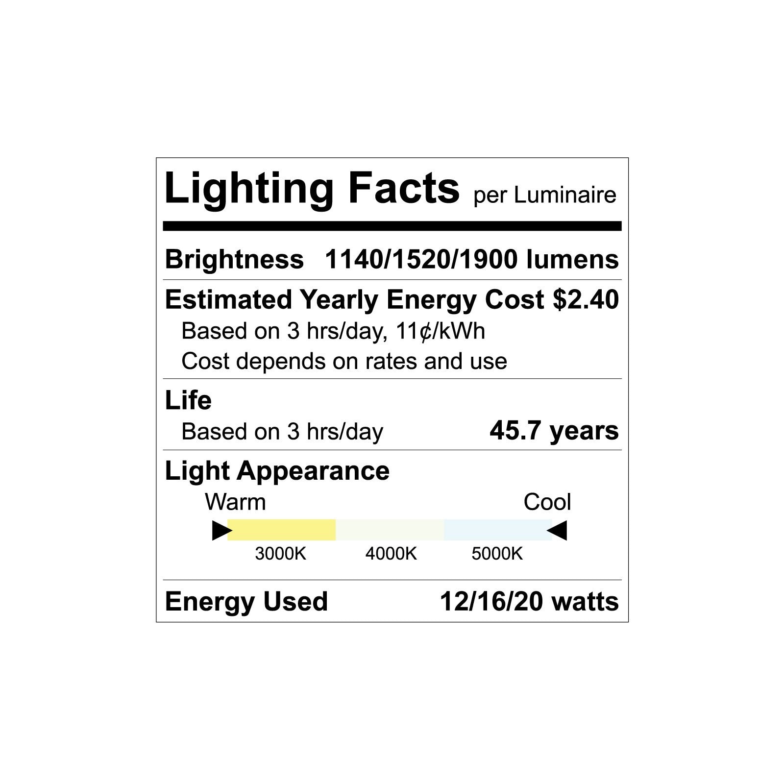 Luxrite Commercial Recessed Lighting with 3 CCT Color and 3 Wattage Selectable Get the most out of your home retrofit ceiling lights by choosing and LED downlight which allow you to switch between 3 different light colors which include 3000K Soft White, 4000K Cool White, and 5000K Bright White Adjust your light color during installation until you have just the right light for your space An ideal commercial space downlight that offers the highest amount of lumens for the size, when compared to residential ceiling lights Not sure if you have enough light These recessed lights also come with a selectable wattage switch which will produce more light output based on the wattages you choose There are 3 choices with every light, 12W which produces 1140 lumens, 16W which produces 1520 Lumens, and 20W which gives you 1900 lumens of bright lighting Each switch can be found on the back of the lighting fixture and gives you the best of a customizable experience until you find the light that fits just right Take your experience even further when you use these lights with a 010V dimmer which allow you to smoothly dim from 100 to 10 light output for a pleasant atmosphere With it's energy star rating for efficiency, UL and IC rating for your safety, wet location rating for reliable indoor and outdoor lighting, each fixture provides everything you need for a quality experience