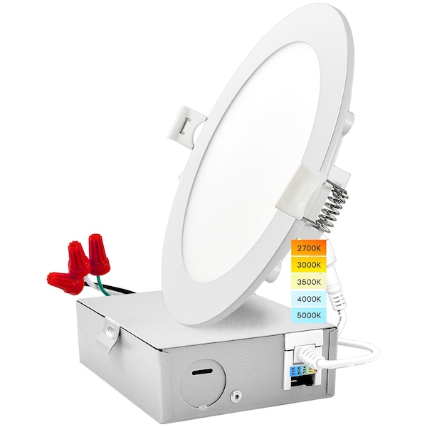 Luxrite Ultra Thin Recessed Lighting with 5 Color Temperature Switch The perfect solution to those that want the ability to pick the correct light for your home or business With these Luxrite LED recessed ceiling lights, you are offered 5 color temperature options to choose from with an easy to use switch attached to each down light Choose from 27K warm white, 3000K soft white, 3500K natural white, 4000K cool white, or 5000K bright white with just a simple adjustment Built with a lightweight and thin design, each LED wafer light is easy to handle and install into your shallow ceilings No can is needed since each ultra thin recessed light comes with it's own jbox for easy wiring and spring loaded clips for a flush to ceiling finish You'll be able to use these downlights indoors and outdoors since each fixture is wet location rated to handle rain and damp areas, so feel free to install in soffits, eaves, or even showers Control the light output with it's smooth dimming capabilities which can go from 100 to 10 light, giving you a comfortable space every time