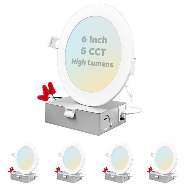 6 Inch Ultra Thin LED Recessed Downlights 5 CCT Selectable 2700K-5000K 15W 1400LM Dimmable 4-Pack