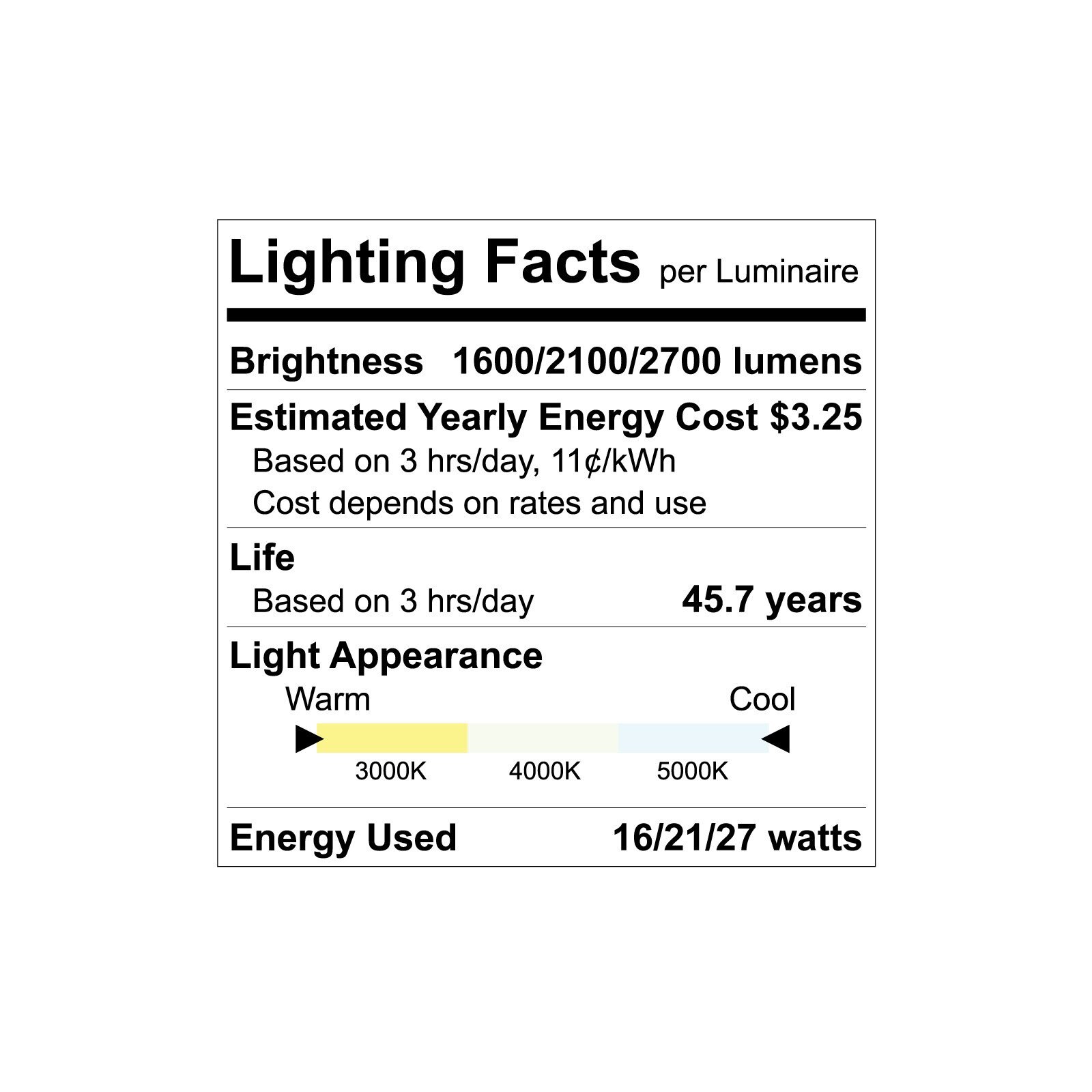 Luxrite Commercial Recessed Lighting with 3 CCT Color and 3 Wattage Selectable Get the most out of your home retrofit ceiling lights by choosing and LED downlight which allow you to switch between 3 different light colors which include 3000K Soft White, 4000K Cool White, and 5000K Bright White Adjust your light color during installation until you have just the right light for your space An ideal commercial space downlight that offers the highest amount of lumens for the size, when compared to residential ceiling lights Not sure if you have enough light These recessed lights also come with a selectable wattage switch which will produce more light output based on the wattages you choose There are 3 choices with every light, 16W which produces 1600 lumens, 21W which produces 2100 Lumens, and 27W which gives you 2700 lumens of bright lighting Each switch can be found on the back of the lighting fixture and gives you the best of a customizable experience until you find the light that fits just right Take your experience even further when you use these lights with a 010V dimmer which allow you to smoothly dim from 100 to 10 light output for a pleasant atmosphere With it's energy star rating for efficiency, UL and IC rating for your safety, wet location rating for reliable indoor and outdoor lighting, each fixture provides everything you need for a quality experience