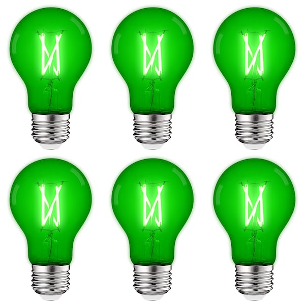 A19 LED Edison Green Light Bulbs 4.5W 60W Equivalent Clear Glass E26 Base, 6PK