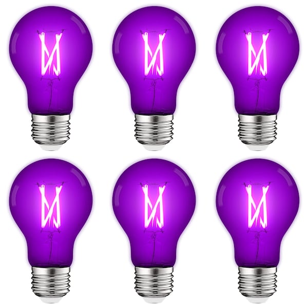 A19 LED Edison Purple Light Bulbs 4.5W 60W Equivalent Clear Glass E26 Base, 6PK