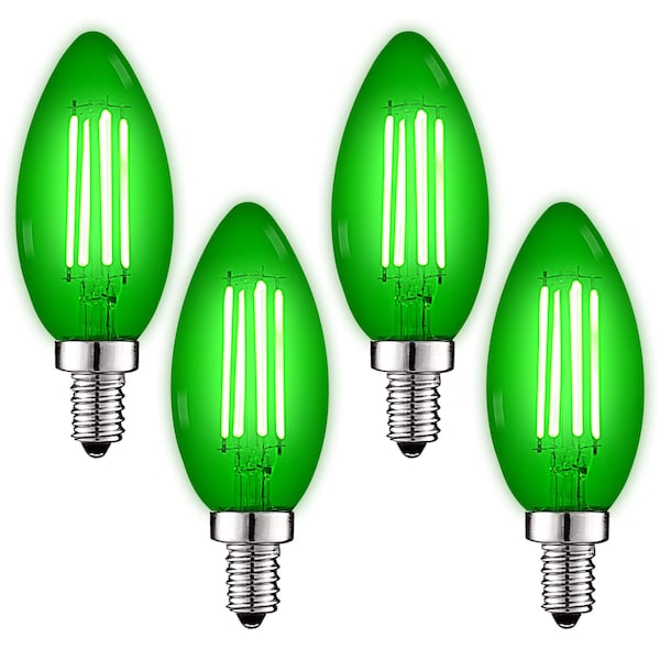 B11 LED Green Light Bulbs 4.5W 40W Equivalent Colored Glass E12 Candelabra Base, 4PK