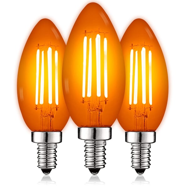 - •RELIABLE LIGHTING - Zero flickering light, zero delay, and zero worries when you use these orange candleabra bulbs in your indoor and outdoor space. Each candle bulb is quick to install, has a small E12 base, wet location rated for reliability, comes UL listed for your safety, and backed by a 2 YEAR WARRANTY.