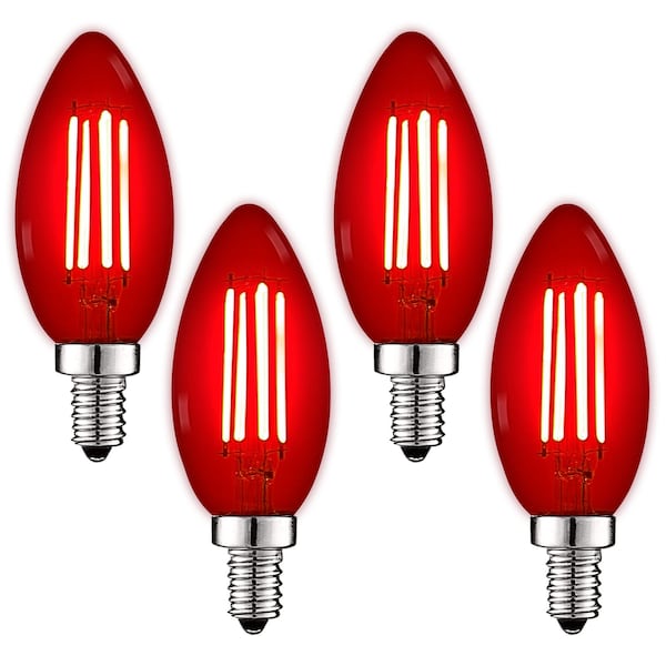 - •RELIABLE LIGHTING - Zero flickering light, zero delay, and zero worries when you use these candelabra base red bulbs in your indoor and outdoor space. Each candle bulb is quick to install, has a small E12 base, wet location rated for reliability, comes UL listed for your safety, and backed by a 2 YEAR WARRANTY.