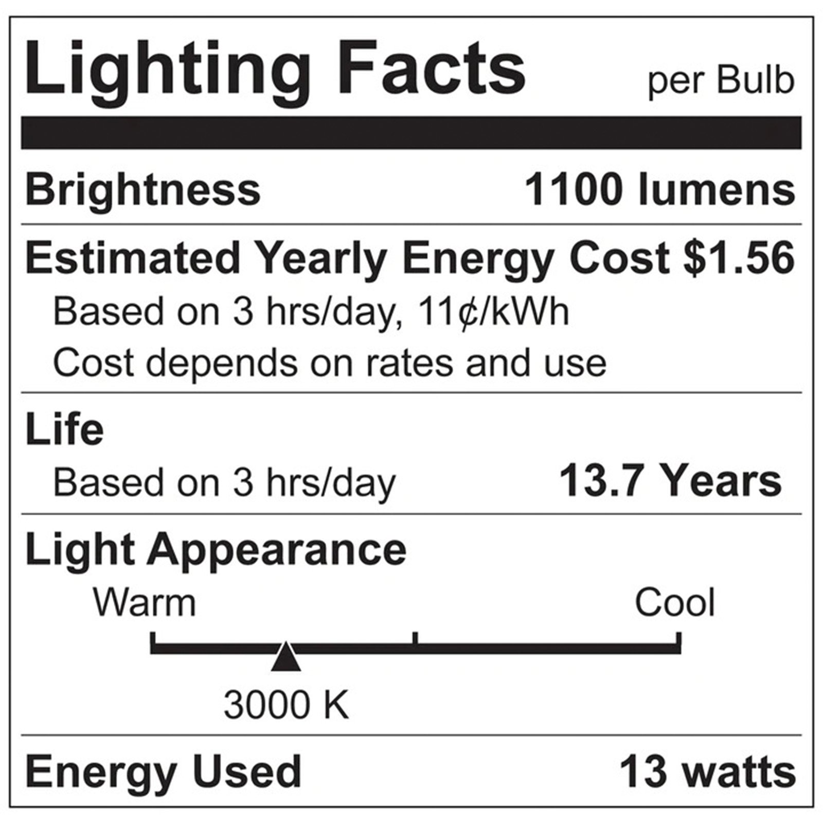 - •SPECIFICATIONS - 13W (85W Equivalent), 1100 Lumens, 110° Beam Angle, Dimmable, LED Flood Bulb, Damp Location Rated, Energy Star, UL Listed, E26 Standard Base, 15,000 Hour Lifetime, 3-Year Warranty