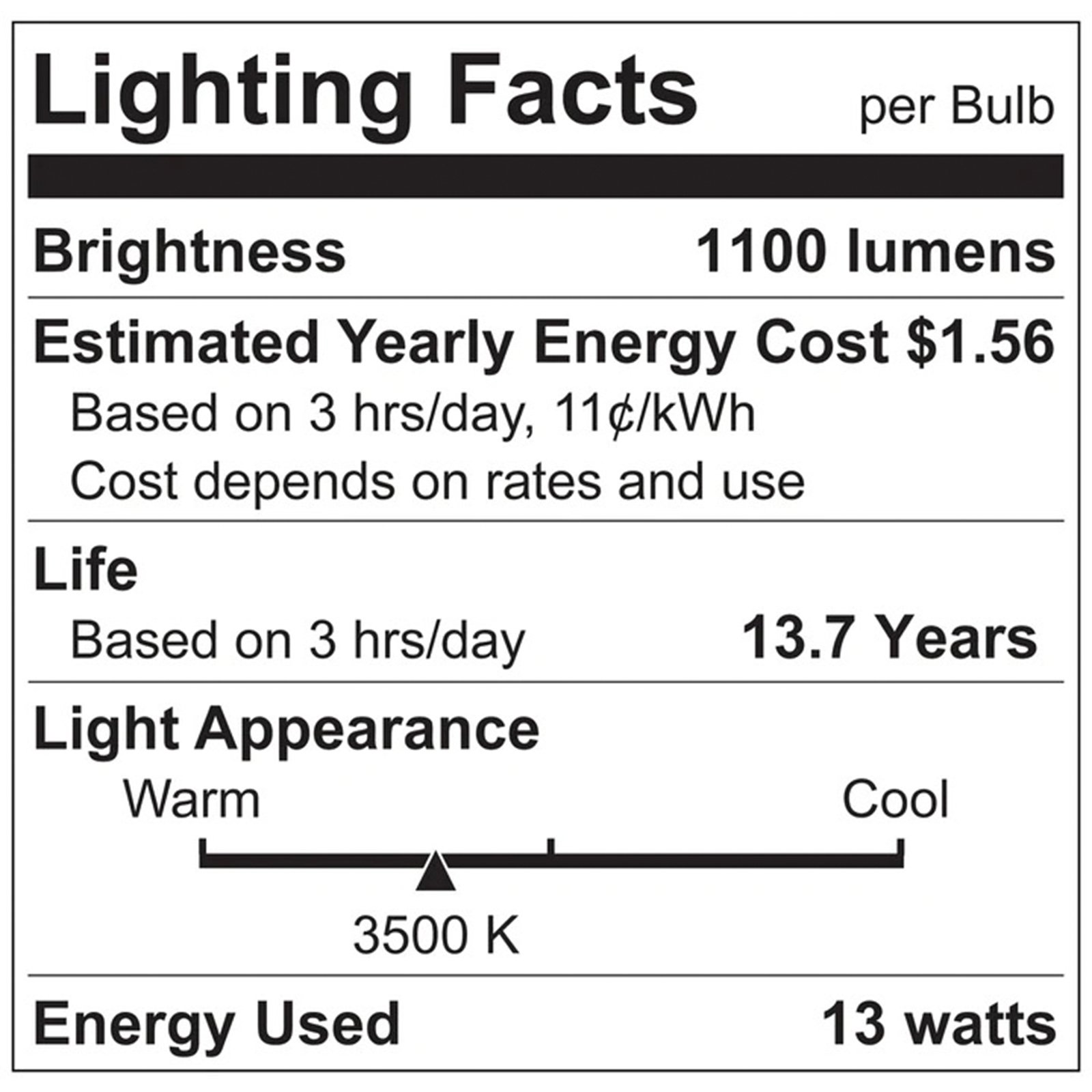 - •SPECIFICATIONS - 13W (85W Equivalent), 1100 Lumens, 110° Beam Angle, Dimmable, LED Flood Bulb, Damp Location Rated, Energy Star, UL Listed, E26 Standard Base, 15,000 Hour Lifetime, 3-Year Warranty