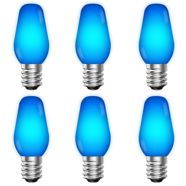 - •COLORFUL LIGHT - These blue C7 bulbs provide vibrant colored light to your string lighting. Bring color to your life with blue candle light bulbs that are the perfect decorative choice for Christmas, holidays, parties, or event lighting.