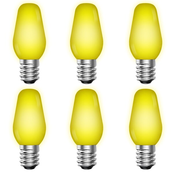 C7 LED Yellow Light Bulbs for String Lights 0.5W Enclosed Fixture Rated E12 Candelabra Base, 6PK