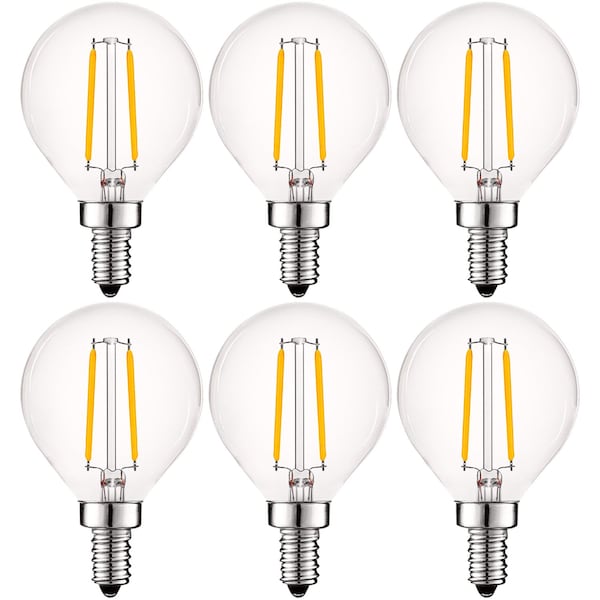 Luxrite Vintage LED Globe Light Bulbs Get the traditional appeal of old fashioned edison light bulbs without the high electricity usage Each LED filament bulb has a clear glass lens to allow for the highest efficiency of light usage, without loss of quality The exposed filament LED chips is not only saving you energy but are eye catching in any space A solid construction with E12 candelabra base make these the ideal choice for decorative lighting fixtures such as chandeliers, ceiling fans, sconces, ceiling fans, lamp fixtures, and more Capable with lighting dimmers so you can control the amount of light you want in your home or office so you will always have the right amount of light for any situation With an astounding 10,000 hour lifetime, each globe bulb lasts 6 times longer than the traditional incandescent round light bulb Feel secure knowing you won't have to replace these lights for the next 9 years Get continuous light with no interruptions and enjoy the classic edison style with LED technology Zero flickering, zero delay, zero worries