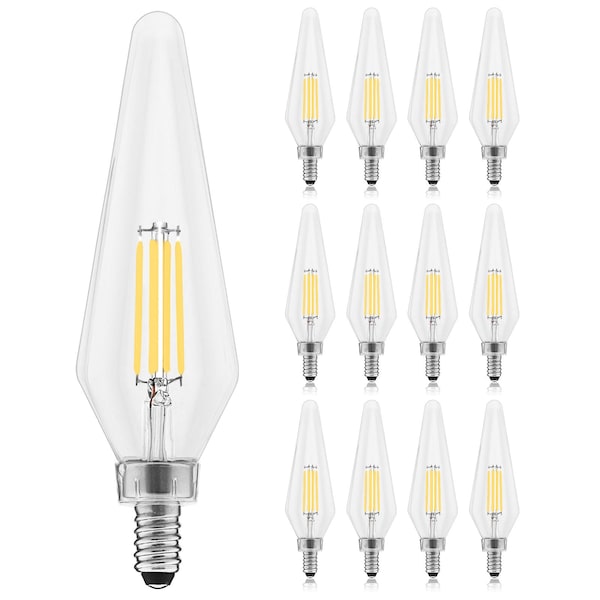 - •RELIABLE LIGHTING - Zero flickering light, zero delay, and zero worries with LED candelabra light bulbs that provide quality indoor and outdoor lighting. Each LED e12 bulb is quick to install, has a HX10.5 crystal shape, comes UL listed for your safety, wet and damp rated for reliability, enclosed fixture rated, has a 300° beam angle, and backed by a 2 YEAR WARRANTY.