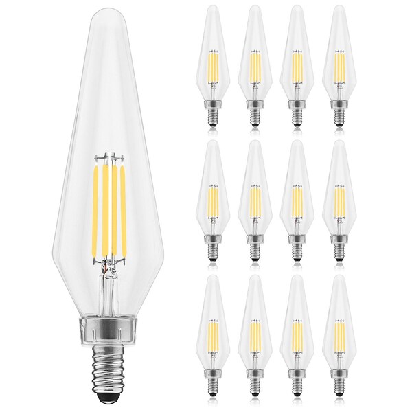 - •RELIABLE LIGHTING - Zero flickering light, zero delay, and zero worries with LED candelabra light bulbs that provide quality indoor and outdoor lighting. Each LED e12 bulb is quick to install, has a HX10.5 crystal shape, comes UL listed for your safety, wet and damp rated for reliability, enclosed fixture rated, has a 300° beam angle, and backed by a 2 YEAR WARRANTY.