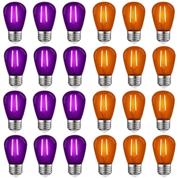 S14 LED Edison Purple and Orange Light Bulbs 0.5W Colored Bulb for String Lights E26 Base, 12PK