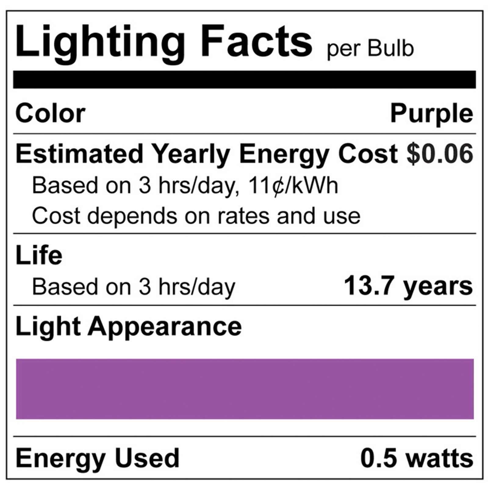- •CONTINUOUS LIGHT - Built to provide the light you need without any interruption. Every LED purple bulb is rated for 15,000 hours of use which is much longer than traditional light bulbs. You can trust that these lights will be ready to use for every occasion, for years to come.