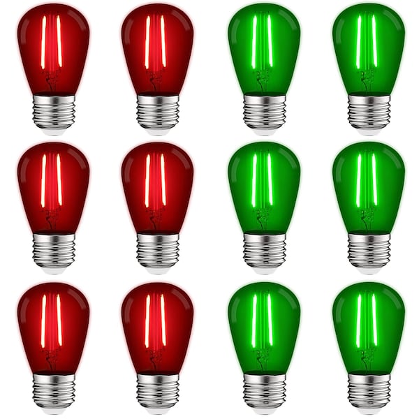 - •COLORFUL LIGHT - Each red and green LED light bulb provides vibrant colored light to your string lighting. Bring color to your life with red light bulbs that are the perfect decorative choice for Christmas, holidays, parties, or event lighting.