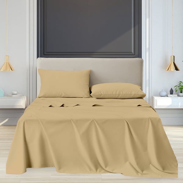 Made of soft microfiber and bamboo, these sheet sets come in a variety of light, soothing colors to complement your beddingProduct DetailsSet ContentsFlat sheetFitted sheet2 pillowcases 1 for twin optionDeep-Pocket Luxurious Organic Bamboo Sheet Set 4-PieceMaterialsType: 60% microfiber, 40% bambooResists stains and wrinkles for easy careResists pilling, maintaining a smooth surface longer than cotton and other fibersSoft and warm, microfiber retains body heat, making it ideal for cold nightsCare InstructionsMachine-wash cold on gentle cycleTumble dry lowDo not bleachFit InformationPocket depth: 12inFits mattresses up to 14inDimensionsTwin:Flat sheet: 66in x 96inFitted sheet: 39in x 75inPillowcase: 20in x 30inFull:Flat sheet: 81in x 96inFitted sheet: 54in x 75inPillowcase: 21in x 30inQueen:Flat sheet: 90in x 102inFitted sheet: 60in x 80inPillowcase: 21in x 30inKing:Flat sheet: 108in x 102inFitted sheet: 78in x 80inPillowcase: 21in x 40inCalifornia King:Flat sheet: 108in x 102inFitted sheet: 72in x 84inPillowcase: 21in x 40in