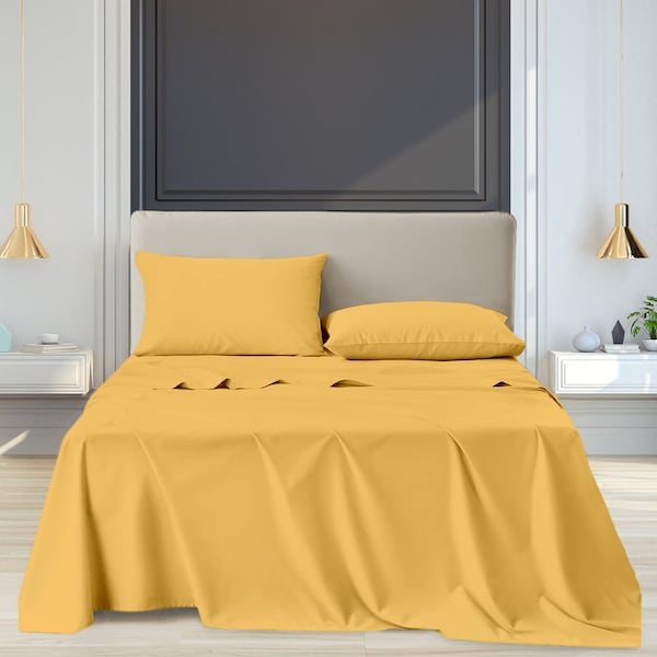 Made of soft microfiber and bamboo, these sheet sets come in a variety of light, soothing colors to complement your beddingProduct DetailsSet ContentsFlat sheetFitted sheet2 pillowcases 1 for twin optionDeep-Pocket Luxurious Organic Bamboo Sheet Set 4-PieceMaterialsType: 60% microfiber, 40% bambooResists stains and wrinkles for easy careResists pilling, maintaining a smooth surface longer than cotton and other fibersSoft and warm, microfiber retains body heat, making it ideal for cold nightsCare InstructionsMachine-wash cold on gentle cycleTumble dry lowDo not bleachFit InformationPocket depth: 12inFits mattresses up to 14inDimensionsTwin:Flat sheet: 66in x 96inFitted sheet: 39in x 75inPillowcase: 20in x 30inFull:Flat sheet: 81in x 96inFitted sheet: 54in x 75inPillowcase: 21in x 30inQueen:Flat sheet: 90in x 102inFitted sheet: 60in x 80inPillowcase: 21in x 30inKing:Flat sheet: 108in x 102inFitted sheet: 78in x 80inPillowcase: 21in x 40inCalifornia King:Flat sheet: 108in x 102inFitted sheet: 72in x 84inPillowcase: 21in x 40in