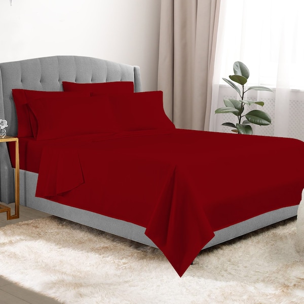 These sheets are crafted using premium materials that ensure a gentle touch against your skin, enveloping you in a world of softness. Available in an array of solid, versatile colors, these sheet sets effortlessly complement your bedroom decor, allowing you to create a serene and harmonious environment.MaterialsMaterial: Made of high-quality microfiber fabricGSM weight: 95, providing a cozy and lightweight feelResistant to stains and wrinkles, ensuring easy care and maintenanceResists pilling, maintaining a smooth surface for a longer period compared to cotton and other fibersOffers a soft and warm sensation, as microfiber retains body heat, making it perfect for chilly nights.Set ContentsFlat sheetFitted sheet4 pillowcases 1 for twin optionCare InstructionsMachine washableTumble dryFit InformationPocket depth: 12inFits mattresses up to 14inDimensionsTwin:Flat sheet: 66in x 96inFitted sheet: 39in x 75inPillowcase: 20in x 30inFull:Flat sheet: 81in x 96inFitted sheet: 54in x 75inPillowcase: 21in x 30inQueen:Flat sheet: 90in x 102inFitted sheet: 60in x 80inPillowcase: 21in x 30inKing:Flat sheet: 108in x 102inFitted sheet: 78in x 80inPillowcase: 21in x 40inCal King:Flat sheet: 108in x 102inFitted sheet: 72in x 84inPillowcase: 21in x 40in