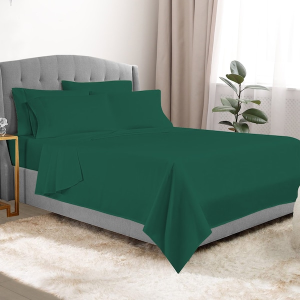 These sheets are crafted using premium materials that ensure a gentle touch against your skin, enveloping you in a world of softness. Available in an array of solid, versatile colors, these sheet sets effortlessly complement your bedroom decor, allowing you to create a serene and harmonious environment.MaterialsMaterial: Made of high-quality microfiber fabricGSM weight: 95, providing a cozy and lightweight feelResistant to stains and wrinkles, ensuring easy care and maintenanceResists pilling, maintaining a smooth surface for a longer period compared to cotton and other fibersOffers a soft and warm sensation, as microfiber retains body heat, making it perfect for chilly nights.Set ContentsFlat sheetFitted sheet4 pillowcases 1 for twin optionCare InstructionsMachine washableTumble dryFit InformationPocket depth: 12inFits mattresses up to 14inDimensionsTwin:Flat sheet: 66in x 96inFitted sheet: 39in x 75inPillowcase: 20in x 30inFull:Flat sheet: 81in x 96inFitted sheet: 54in x 75inPillowcase: 21in x 30inQueen:Flat sheet: 90in x 102inFitted sheet: 60in x 80inPillowcase: 21in x 30inKing:Flat sheet: 108in x 102inFitted sheet: 78in x 80inPillowcase: 21in x 40inCal King:Flat sheet: 108in x 102inFitted sheet: 72in x 84inPillowcase: 21in x 40in