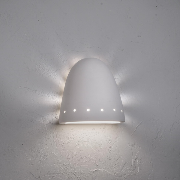 If you're looking for simple, sleek and functional outdoor lighting, this ceramic fixture checks all the boxes! The small round-top wall light is adorned only with a row of perforations along the bottom of the fixture. Closed at the top, this ceramic half-dome creates washes of light to accentuate your home's exterior surfaces and architectural details. UL listed for wet locations, it can withstand all types of weather conditions and will not rust or corrode. The focused wash of downlight is bright and glare-free, making this fixture ideal for accenting wall textures as well as safely illuminating sidewalks. Luxury Lighting offers a variety of different styles and finishes so you can find the exact light you need!