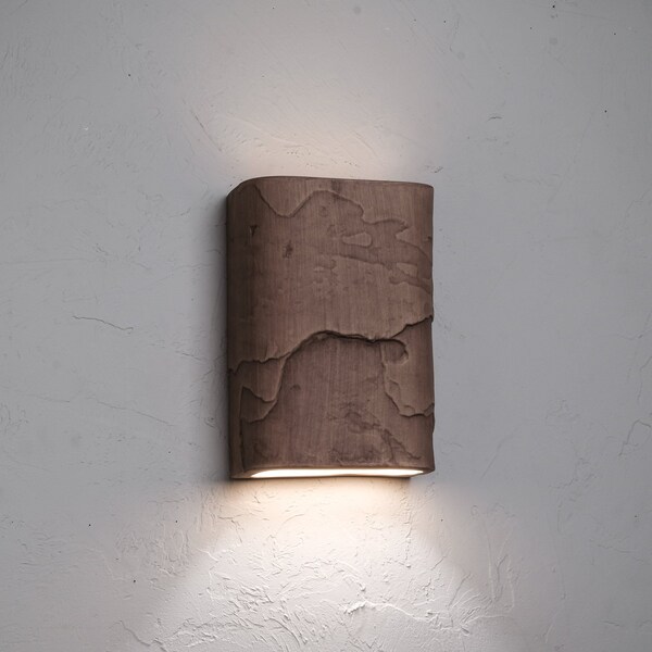 Luxury Lighting ceramic wall lights are non-corrosive and can withstand all types of weather humid or dry, hot or cold. A slate-like texture and adobe color give this dimmable rectangular sconce a Southwest look. UL listed for wet locations, it won't rust or corrode as metal does. The surface of this flush-mount fixture imitates the natural layers and cleavage of real slate. It's a beautiful addition to any home, especially those with wood siding or decorative areas of stone or rock.