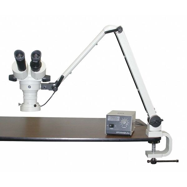 Microscope, Microscope Type Stereo, Stand Type Flexible Arm, Light Source None, Features Clamp or Table Mount Rotates 360 Degrees , Includes 30 in Sprin Loaded Arm