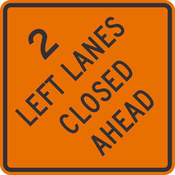2 Left Lanes Closed Ahead, 36x36, Engineer Grade, Orange