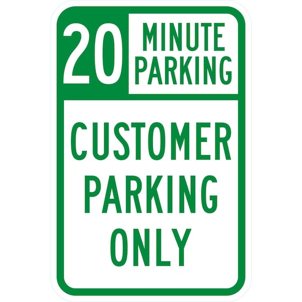 20 Minute Parking Customer Parking Only, 12x18, Diamond Grade, White