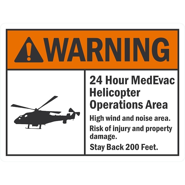 24 Hour MedEvac Helicopter Operations Area High Wind, 24x18, Non-Reflective, White