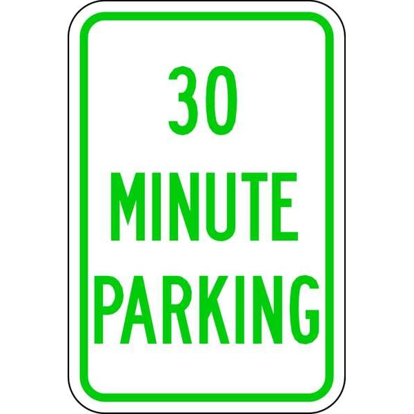 30 Minute Parking Parking Sign, Height 18 in, Width 12 in, Sign Material Aluminum, Sign Mounting Style Mounting Holes, Printed Language English, Sign Shape Vertical Rectangle