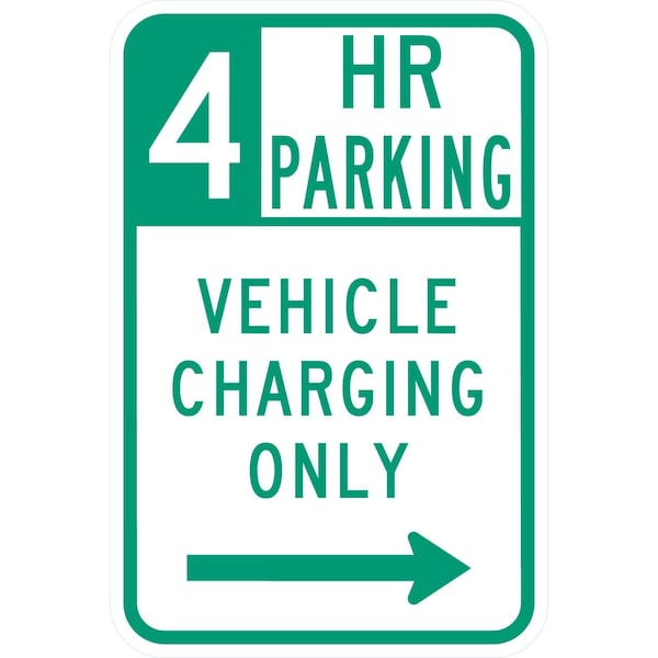 4 HR Parking Electric Vehicles Only w/right arrow, 12x18, Engineer Grade, White