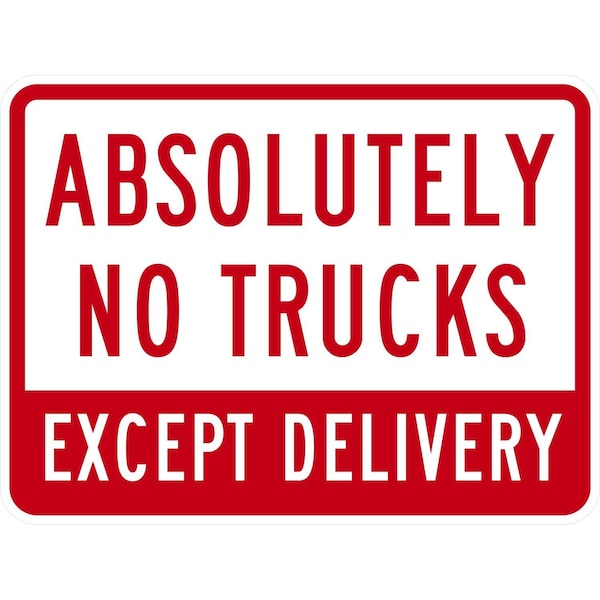 Absolutely No Trucks Except Delivery, 24x18, Engineer Grade, White