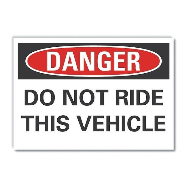 Accident Prevention Danger Label, Horizontal Rectangle, Number of Printed Sides 1, English, Sign Format Traditional OSHA, Sign Legend Do Not Ride This Vehicle, Sign Legend Background Color White, Sign Legend Style Text