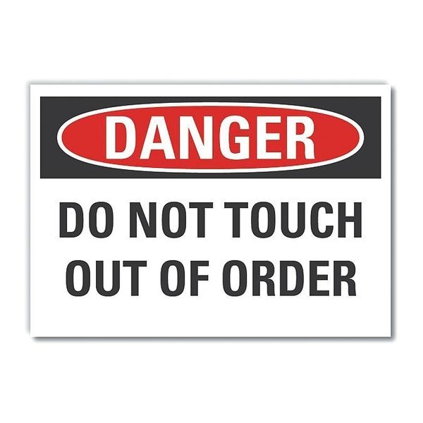 Accident Prevention Danger Label, Horizontal Rectangle, Number of Printed Sides 1, English, Sign Format Traditional OSHA, Sign Legend Do Not Touch Out Of Order, Sign Legend Background Color White, Sign Legend Style Text
