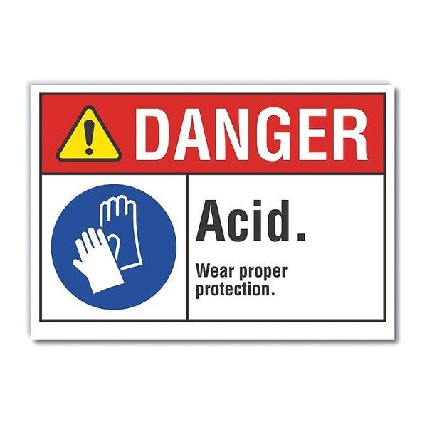 Acid Danger Label, Horizontal Rectangle, Number of Printed Sides 1, English, Sign Format ANSI/OSHA Format, Sign Legend Acid. Wear Proper Protection., Sign Legend Background Color White, Sign Legend Style Symbol and Text